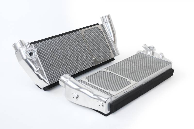 Ferrari 488 / Pista / F8 Twin Intercooler Set - Raw Billet With multiple tunes available for the Ferrari 488/Pista/F8, there was an obvious demand for upgraded cooling systems. A big limiting factor in tuning has been high Intake Air Temperatures (IATs) produced by the turbos which already generate around 35 PSI of boost from the factory. Sold as a pair (Left & Right Intercoolers) Eliminates Heat Soak and Lower Intake Air Temperatures (IATs) for Maximum Performance in High-Performance and Race Conditions Formula-1 Performance Grade Cores by PWR (2-Row Cores features Rolled Tubes w/ Inner Fins) 100% TIG Welded CNC Machined Billet End Tanks for Maximum Strength & Durability Made in the USA at PWR North America
