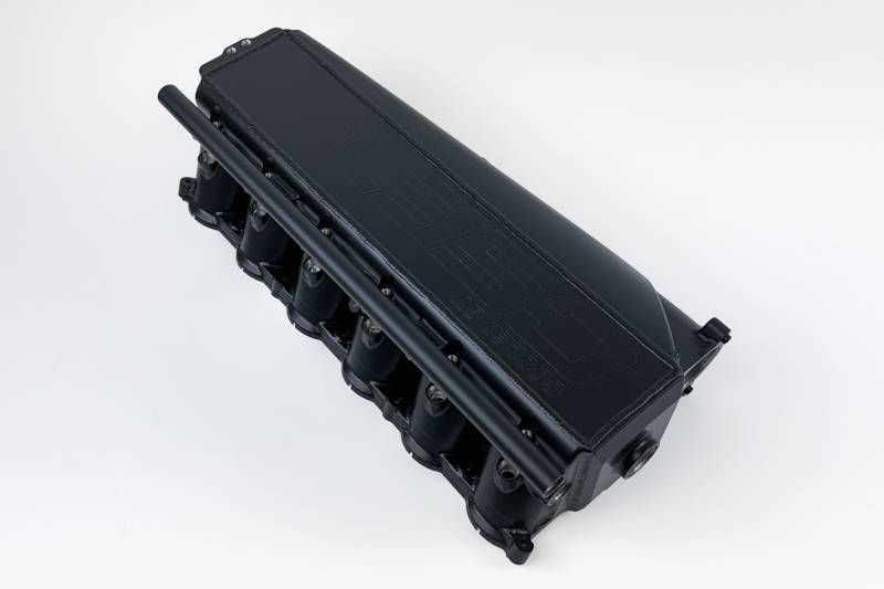 BMW Gen 2 B58 Race X Charge Air Cooler Manifold - Thermal Dispersion Black The Race X Manifold is designed for high level motorsports competition and racing applications. The limits of the current Super Manifold are very high and more than enough for many enthusiasts, tuners, and racers. However, those looking to push their Gen 2 B58s to the maximum have been asking for more. Race X features a 25% larger core, additional parameter ports, and an optimized water flow system. The manifold can be used in either dual or single pass configurations and features a new front port that has been optimized for ice box setups. This is the most versatile and largest manifold available on the market and has been race tested on some of the fastest B58 powered drag cars in the world. Utilizes a High Performance, Motorsports-Grade Bar/Plate Air-to-Water Intercooler Core - 25% larger than the standard Gen-2 B58 Super Manifold (CSF#8200) - 15 Rows of Water Cooling vs. CSF #8200 12 Rows and OEM 6 Rows Core can be setup for dual or single pass: The -16 ORB bung on front water end plate can be used to adjust the flow configuration to single-pass and/or to be used with an ice-box setup. Includes CNC machined plug for dual-pass configuration Designed in SolidWorks Using Computational Fluid Dynamics (CFD) Integrated Air Divider in Inlet Tank Evenly Distributes Airflow Throughout the Core Improved slotted mounting holes on throttle body side for easier installation