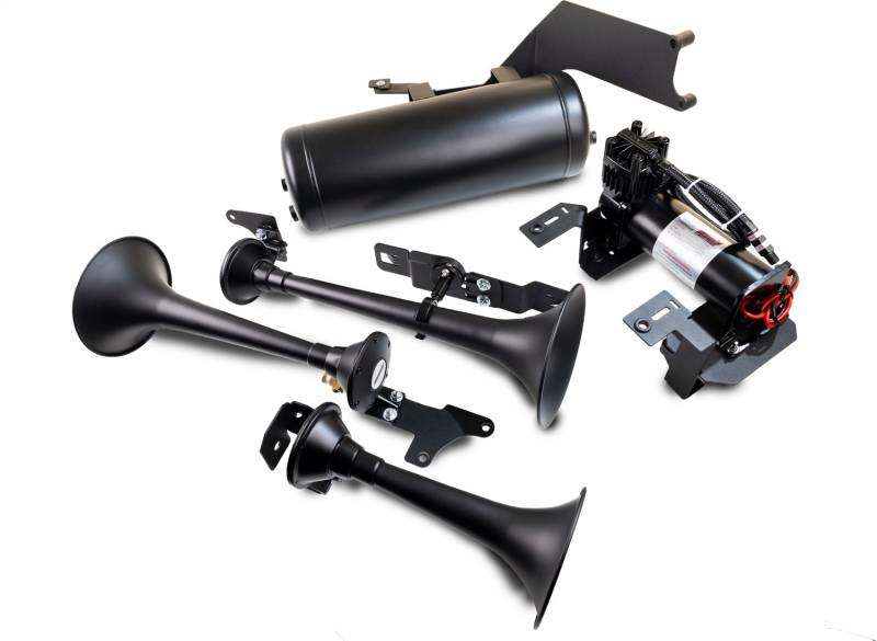 Onboard Air System w/Horns; Includes Triple Black Horns PN[730]/ 150/200 PSI Air Compressor PN[6450RC]/ 3.3 Gallon Air Tank PN[6355RT];
