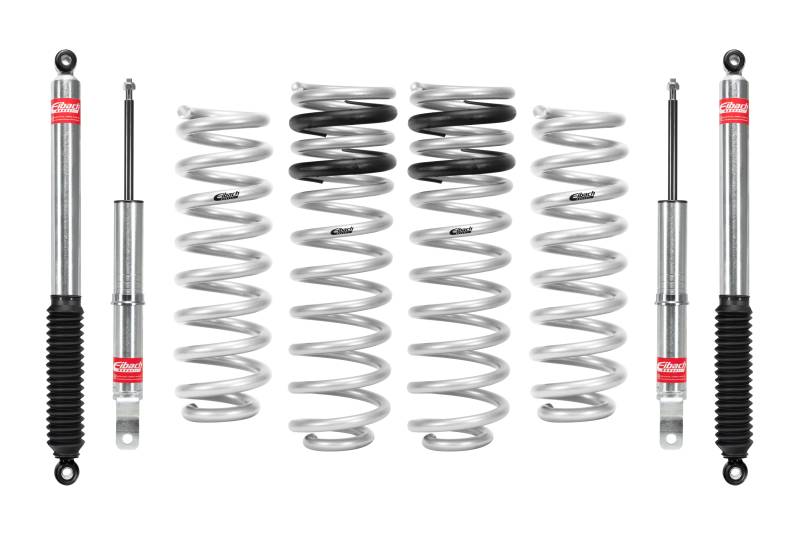 Set of 4 Shocks + 2 Front Springs Matched system of lift springs and shocks designed for increased travel and performance Provides balanced ride quality, control and off-road capability Manufactured by Eibach using off-road race spring technology and OE quality standards Shocks individually tested for matched performance in each corner Made In U.S.A.