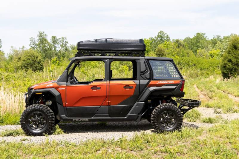 Stay Organized and Adventure Ready: You should never be penalized for being prepared to take the road less traveled. When efficiency matters most, your gear needs to be secure, accessible, and organized. Rough Country keeps the adventurist in mind by delivering a modern storage solution built to work as hard as you do. Introducing Rough Country's MOLLE Panel System for the Polaris Xpedition ADV 5, designed to transform unused side window space into functional, gear-ready storage.Built for Strength and Customization: Whether your Xpedition ADV 5 is a dedicated workhorse or a fully loaded overland rig, this MOLLE panel system adapts to your needs. The panels mount securely to the interior rear side windows, keeping tools, recovery gear, and trail essentials within easy reach. Constructed from heavy-duty 1/8 inch steel and finished in a durable black powder coat, this system is built to handle rough terrain, harsh conditions, and long days on the trail.Simple Installation with Lasting Confidence: Designed for excellent fitment right out of the box, Rough Country's MOLLE Panel Kit installs easily using factory mounting points with no drilling required. This bolt-on system includes all necessary hardware and can be installed at home in as little as 30 minutes. For added peace of mind, the kit is backed by Rough Country's limited lifetime replacement warranty, protecting against structural and workmanship defects after the date of purchase.
