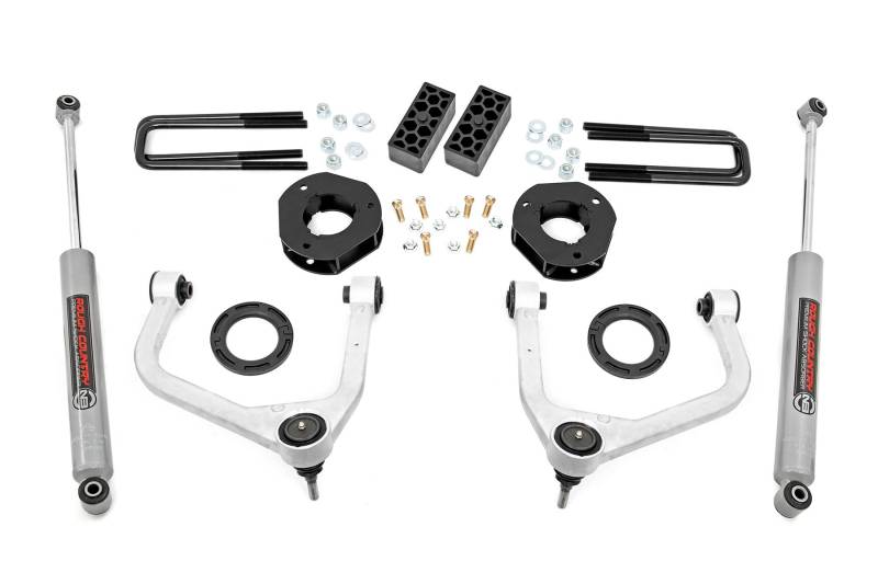 Explore New Heights: GM's fourth-generation Silverado 1500 features an impressive all-new design that's built from the ground up, with aggressive angles and head-turning stylings that fit in beautifully when transformed with Rough Country's 3.5-inch Suspension Lift.Innovative Design and Construction: When changing a vehicle's suspension, the key to preserving ride quality is keeping the geometry of all suspension components as close to their factory angles as possible. Rough Country's 3.5in lift features a set of forged aluminum upper control arms to provide the correct suspension geometry in our most durable control arm to date! This perfect-height lift is a great choice for anyone who wants more than a simple level but doesn't quite want the full height of a 6-inch option. This kit lifts and levels the front of the vehicle with the rear, offering enough increased ground clearance to run up to 295/55R20 tires with an improved, aggressive look. We didn't want to limit you to one standard kit. Rough Country's 3.5-inch kit is configurable with all the shock options that we offer. This allows you to choose which shock series you want! Ranging from our nitrogen-charged N3 shocks to our Vertex reservoir shocks the power to choose is in your hands.Installation: Requiring the use of a strut compressor to install, an estimated timeframe of 5-6 hours is recommended to complete this full installation. This full kit can be installed at home and can be completed efficiently and quickly!Limited Lifetime Replacement Warranty: Rough Country's 3.5" Suspension Lift Kit is backed with a limited lifetime replacement warranty towards manufacturer defects. As such, the product is protected from structural and workmanship damage after the date of purchase. With our industry-leading warranty give yourself peace of mind when using Rough Country's Suspension products!