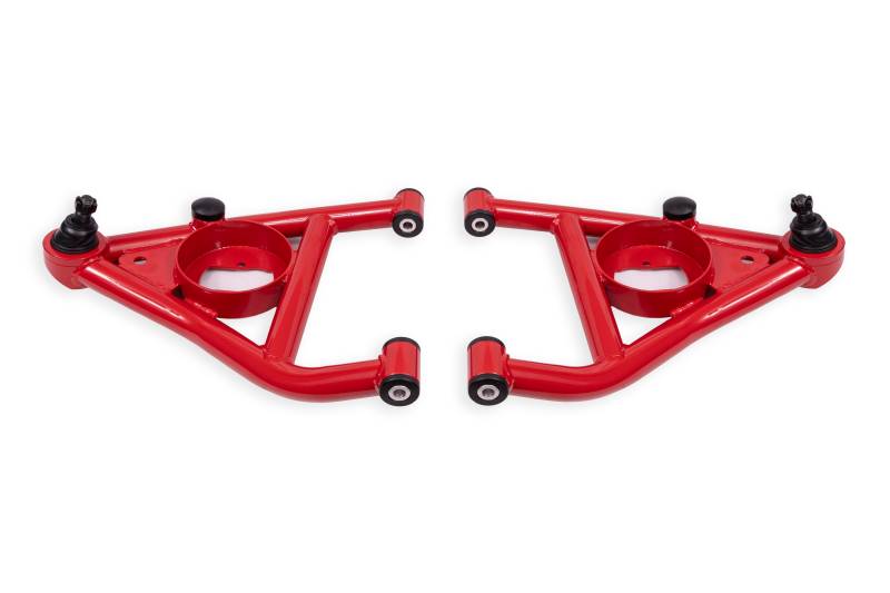 A-arms, Lower, Delrin, Std Ball Joint, Rear Bump Stops Improve handling and front-end stability on your 1967-1969 GM F-Body and 1968-1974 GM X-Body with a set of Lower A-Arms from BMR's suspension! Factory A-Arms and bushings can cause deflection, resulting in changes in alignment and reduced performance. BMRs Non-Adjustable Lower A-Arms (AAL316) greatly improve steering feel and response and are designed for street performance, drag racing, and handling applications. When performance is a must, rely on BMR's suspension!