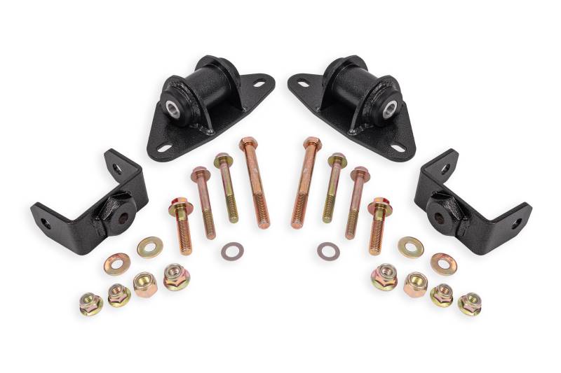 Motor Mount Kit, Delrin Motor mounts are used to keep the engine in place and absorb energy from it. However, factory motor mounts often do little to minimize engine deflection, resulting in lackluster throttle response, slower reaction times, and less accurate shifts in cars with manual transmissions. BMR's suspensions Delrin Motor Mount Kit (MM571) is built to eliminate engine deflection and designed for drag racing, street performance, and handling applications. When performance is a must, rely on BMR's suspension!
