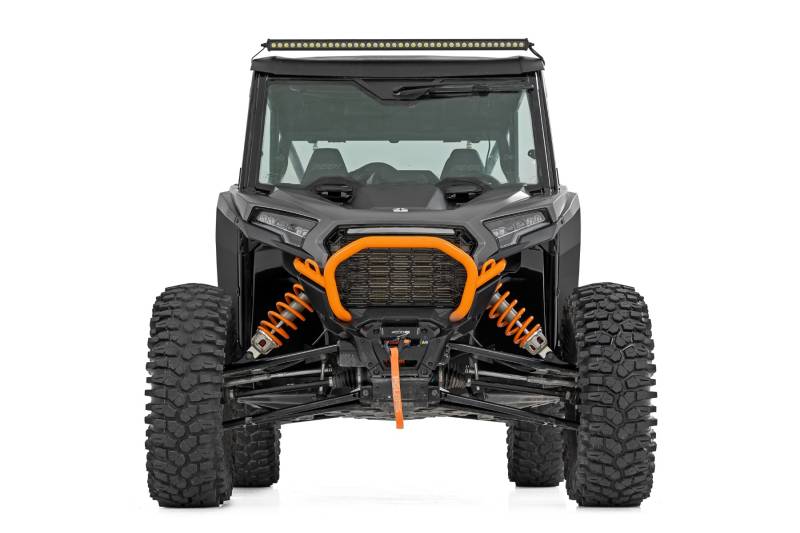 - Powerful Forward-Facing Illumination: Light up every trail with precision and clarity, ensuring maximum visibility in low-light conditions.\ Effortless 100% Bolt-On Installation: Designed for a seamless, hassle-free upgrade with no modifications required.\ Optimal Mounting Position: Sits above the windshield for an unobstructed view, keeping your line of sight clear.\ High-Output Options: Choose between Rough Country's Black Series LED Light Bar with 16,000 lumens or the Spectrum Series with a massive 18,900 lumens.\ Rugged IP67 Waterproof Design: Built to withstand the elements, ensuring reliable performance in rain, mud, or dust.\ Heavy-Duty Die-Cast Aluminum Housing: Offers superior durability and long-lasting protection against impacts and corrosion.\ Complete Upgrade Kit: Includes snap-on cover and premium wiring harness for a professional, plug-and-play installation..