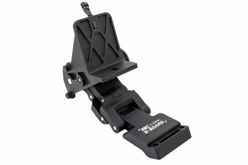 Step up in style. »Sidesteps have come a long way, and now we've taken them to the next level with Rough Country's »Power Running Boards! These retractable E-Boards tuck tight »for a clean look when not in use and automatically extend when the door is opened. With an anti-slip surface that provides a secure stepping area, getting in and out of your ride has never been easier. »Our Power Running Boards also »include LED lights that provide illumination when deployed and shut off when steps are closed, providing a sleek, aerodynamic look.\ »Premium Construction. The Rough Country E-Board Steps combine durability, strength, and style. These 6" all-season steps are made from lightweight yet durable aluminum and can support up to 660 lbs per side. Equipped with dual motor technology, these steps can handle anything Mother Nature throws their way. They feature an automatic 'SAFE-STOP' mechanism that engages if a blockage is detected and include an interior bypass switch for manual override. So whether you're heading out on a weekend errand or loading up for a camping trip, our electric steps offer reliable protection for all your adventures.\ Installation. »These easy-to-install steps are the perfect solution for getting in and out of your vehicle. No drilling is required for installation, and the steps tuck tight under the rocker panel »when not in use. Don't struggle to get in and out of your vehicle anymore. Make life easier with Rough Country's Power Running Boards.\ Warranty. Rough Country backs its products with a limited lifetime replacement warranty. Our products are protected from structural and workmanship damage after purchase. Our industry-leading warranty gives you peace of mind when using Rough Country products!