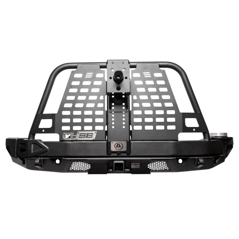 The Smittybilt XRC Atlas rear bumper have gone through extensive design and testing to meet stringent international pedestrian safety standards. As a result, the bumpers is stylishly chiseled as well as being extremely strong and functional. The rear bumper utilizes a new cam-style pin adjustment for ensuring perfect gate stowing every time. Re-opening the gate is simple too, only requiring minimal effort, however you can rest easy as the double latch will eliminate accidental opening. The bumper allows impressive ground clearance and can accommodate up to 37 in. tires. Enjoy the MOLLE Pals compatibility to allow multiple pouch mounting configurations. The bumper includes a Class III rated hitch, mounting locations for your jerry can and lift jack (Jerry Can and Hi-lift are not included) and a 3rd brake light mounting bracket.