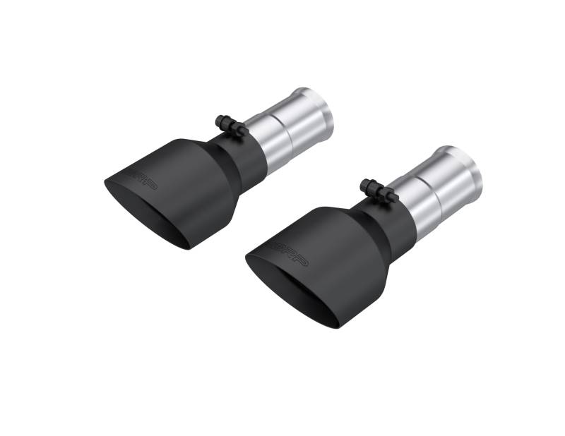MBRP Tip Set, 5in OD Dual Wall Angle Cut, BLK. The exhaust tip is the crowning touch to your performance exhaust. It is your opportunity to really show off your personal style. That's why MBRP offers such a wide assortment of high quality, bolt on tips, because everybody has their own idea of style. MBRP offers T304 polished stainless, Black coated, Burnt End and Carbon Fiber tip options in various sizes. These Tips are vehicle specific. Quality Material. Specially Designed For your Vehicle. Double-Walled Stainless Steel Construction. Bolt-on Installation.
