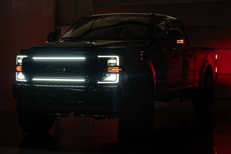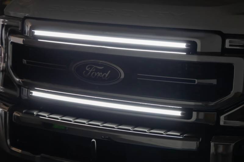 Tired of being caught in the dark? Our Grille Mount LED Light Kit is the answer to your nighttime needs. Designed specifically for the Ford F-250/F-350 Super Duty, this kit brings the brightness you need to tackle those moonless nights and foggy mornings with confidence.Blazing Brightness: This kit packs 324 LED chips that provide a powerful beam to light up even the darkest trails, ensuring you see every rock, rut, and mud puddle in your way. Durable Materials: Our lights, featuring a tough-as-nails aluminum housing and IP68 waterproof rating, are ready to withstand Mother Nature's wrath.Precision Lighting: The nylon reflector and silicone lens surface work together to deliver a focused, clear light. Say goodbye to scattered beams and hello to a sharp, consistent light that shows you exactly where you're headed.Long-Lasting Power: Running on 12V power and 32 watts, these lights are built to last over 50,000 hours. That's a whole lot of night drives, camping trips, and late-night work sessions.Complete Kit: No need to hunt down extra parts this kit includes everything you need: mounting brackets, hardware, and harness. Just mount it, wire it up, and hit the road.The Grille Mount LED Light Kit for your Ford F-250/F-350 Super Duty is the upgrade you didn't know you needed but won't be able to live without. Whether you're navigating rugged terrain or setting up camp after dark, this kit has you covered. Light up the night with Rough Country's Grille Mount LED Light Kit!