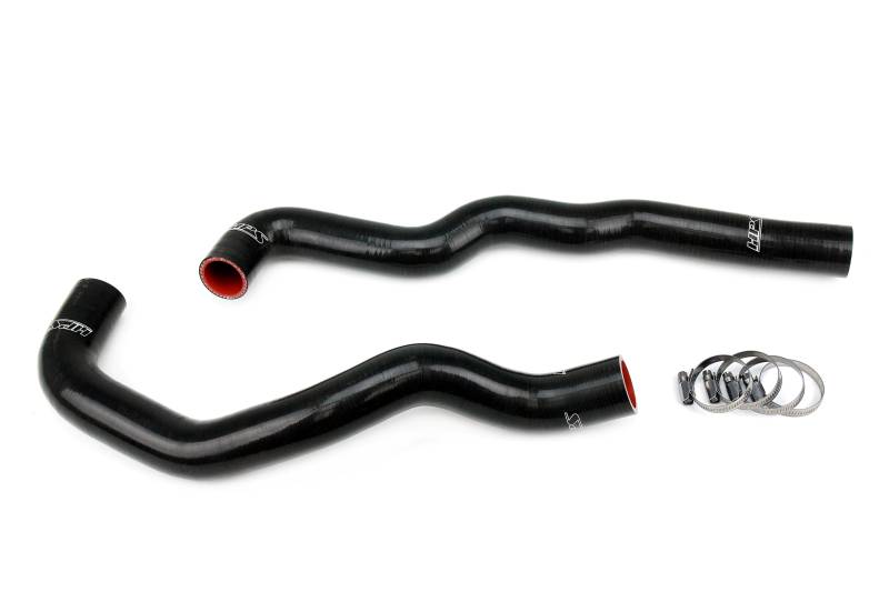 High temp 3-ply reinforced silicone, replaces OEM rubber radiator coolant hoses. This HPS High Temp 3-ply Reinforced Silicone Radiator Coolant Hose Kit is designed to replace stock OEM rubber upper and lower radiator hoses which can eventually weaken over time, leading to premature failure. With premium quality silicone and racing inspired design, this hose kit can withstand high temperature and high pressure operating conditions of the engine yet still maintain peak efficiency during competition or daily driving. HPS silicone hose kits have all the correct bends and sizes for a perfect fit replacement for your OEM rubber coolant hoses. Compared to the universal hoses you can get from the local auto store, HPS hose kits are much easier to work with. Maximum temperature rating: 350 degrees Fahrenheit. 100% stainless steel clamps are included for easy installation. Ideal replacement or performance upgrade for radiator hoses which can eventually weaken over time, leading to premature failure. Withstands harsh high temperature and high pressure operating conditions while maintaining peak efficiency during competition or daily driving. Max. temperature rating: 350F (177C). Includes HPS 100% stainless steel industrial grade embossed hose clamps which will not cut through the hoses. Race proven design ensures long lasting quality over the stock rubber hoses. Custom designed by HPS.