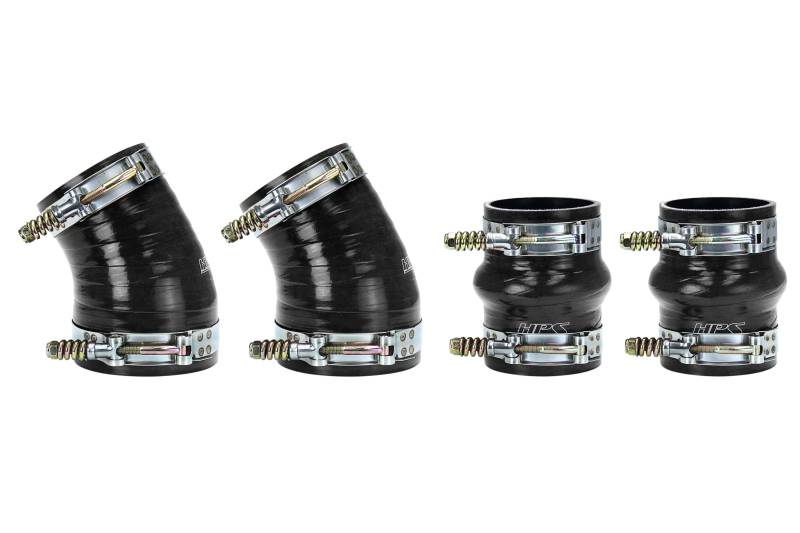 4-ply reinforced fluorolined silicone, replaces OEM rubber intercooler boots This HPS 4-ply reinforced silicone intercooler boot kit replaces the stock OEM intercooler boots that are known to weaken and fail over time. Made with premium quality oil-resistant fluorolined silicone and crafted with performance driven design, this boot kit can withstand high boost pressure and ultra high temperature conditions under the hood through a wide range of driving conditions. Mitigate the risk of boost leak with boots that can withstand over 100 PSI. This HPS silicone boot kit is designed using OEM parts to ensure a perfect fit. Avoid expensive towing fees by upgrading your truck with an HPS Silicone Intercooler Boot Kit. Maximum temperature rating: 500 degrees Fahrenheit. Heavy duty stainless steel spring loaded T-bolt clamps are included for easy installation. Direct replacement upgrade for old or damaged OEM intercooler boots. Withstands harsh high temperature and high pressure operating conditions that range from daily driving to heavy towing. Max. temperature rating: 500F (260C) and working pressure rating of over 100 PSI. Includes HPS stainless steel industrial grade spring loaded T-bolt clamps. Intercooler boots are fluorolined for protection from oil blow-by. Engineered with 4 layers of reinforced silicone to ensure long lasting quality over stock boots.