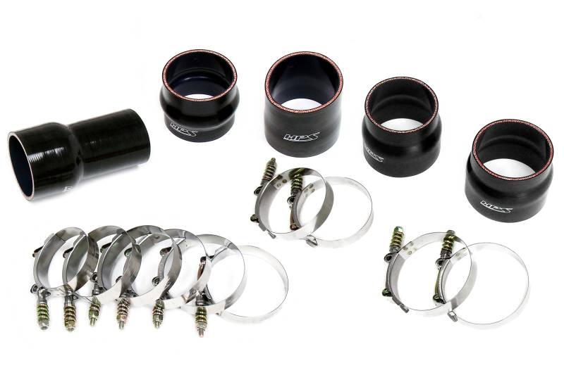 Prevent boost leaks, reduce turbo lag and EGTs, improve throttle response. This HPS Performance Hot and Cold Side Charge Pipe Kit replaces the stock OEM charge pipes on your LML Duramax powered truck. The stock charge pipes have been known to fail at inopportune moments due to design flaws and poor material choice. The custom mandrel-bent stainless steel 3" hot side and 3.5" cold side tubes allow more air to flow into your engine while drastically reducing EGT’s and is designed to allow for ease of installation and service. This kit features 4-ply reinforced oil resistant fluoro-lined silicone boots designed to resist the damaging effects of oil blow-by commonly found in the 6.6L Duramax Diesel LML engines. Also included in the kit are stainless steel spring-loaded T-bolt clamps that accommodate for fluctuations in temperature and pressure during operation without risking boost leaks. Ideal replacement or performance upgrade for old or damaged OEM hot side and cold side charge pipes. Smooth mandrel-bent stainless steel tubing for optimized air flow. Reduce exhaust gas temperature (EGT), improving the engine's overall efficiency and longevity. Includes 4-ply reinforced oil resistant fluoro-lined silicone boots and stainless steel spring loaded T-bolt clamps. Replaces OEM PN: 23282450, 84094727.