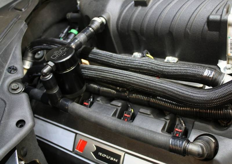 Oil Separator 3.0 Passenger Side During the process of venting crankcase pressure back through your intake track, large amounts of oil, in the form of vapors can gather/accumulate in your intake tube, intake manifold runners and even dilute your gas, lowering its octane level. This happens on all engines and is even worse with forced inducted vehicles (supercharged and turbocharged) as crankcase pressures are increased. To combat this, we have developed an oil separator of our own design. Milled from solid billet aluminum this is a rock-solid piece. It has a knurled tank base for easy removal to drain the spent oil and an O-ring seal to prevent any leaks.