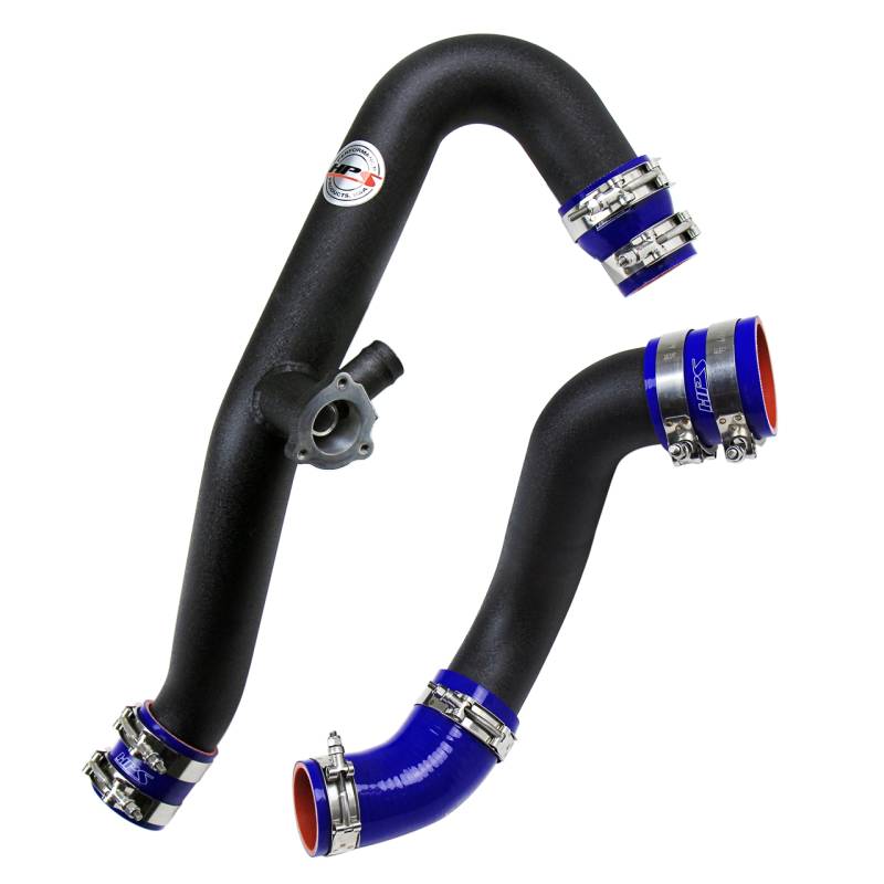 Gain +17.1 Horsepower, +16.9 Torque, Reduces Turbo Lag, 2.5" and 2.75" Pipes Upgrade your vehicle's performance and minimize weak points in the intercooler system with the HPS Performance Hot and Cold Side Intercooler Charge Pipe Kit. Featuring 2.5" and 2.75" bead-rolled aluminum piping, this kit delivers a smoother, less restrictive airflow compared to the OEM design, resulting in significant gains of 17.1 horsepower and 16.9 ft/lb. of torque, along with improved throttle response—all without the need to retune your ECU. Built for durability, the kit includes high-temperature and high pressure resistant, 4-ply reinforced silicone hoses and 100% stainless steel T-bolt clamps, capable of handling over 50 psi of boost, replacing the failure-prone factory rubber couplers and clamps. This kit is compatible with both OEM and aftermarket intercoolers that utilize factory OEM piping. Delivers dyno-proven performance gains of 17.1 horsepower and 16.9 lb-ft. of torque. 2.5" hot side and 2.75" cold side mandrel-bent aluminum alloy piping replaces the restrictive stock piping. Bead rolled pipe ends prevent couplers from popping off under boost. Features HPS signature high-temperature resistant 4-ply reinforced silicone hoses and industrial grade stainless steel T-bolt clamps. Easy bolt-on installation and does NOT require any retuning or additional modifications. **This product is not CARB exempt and is unavailable for purchase in California or for use on any pollution controlled motor vehicle.**