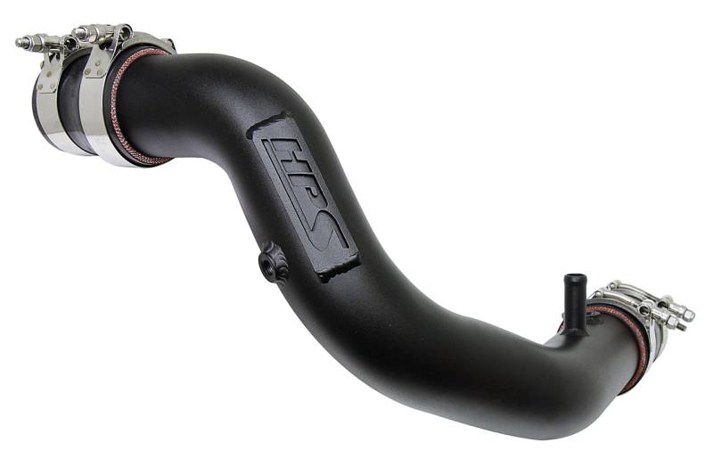 Prevent boost leaks, add 6.6 hp and 9.1 lb-ft. tq, improve throttle response. This HPS Hot Side Intercooler Charge Pipe Kit is a simple yet effective performance upgrade from the OEM restrictive plastic intercooler piping. Made with 2.5" lightweight mandrel-bent aluminum tubing, this charge pipe kit delivers smoother air flow compared to the stock restrictive design. The bead rolled pipe ends prevent couplers from popping off under high boost. Included in the kit are high temperature and oil resistant 4-ply reinforced silicone couplers and 100% stainless steel T-bolt clamps that are engineered to wit'stand the harshest operating conditions. This intercooler piping kit optimizes air flow to generate dyno proven gains of 6.6 horsepower and 9.1 lb-ft. of torque to improve throttle response and overall drivability without needing to retune the ECU. This pipe also offers an optional 1/8" NPT bung to run methanol or injection boost gauges. Simple but effective hot side charge pipe upgrade that reduces turbo lag and improves throttle response. Dyno proven performance gains of +6.6 horsepower and +9.1 lb-ft. of torque. 2.5" mandrel-bent aluminum alloy piping replaces the OEM stock restrictive plastic tube. Optional 1/8" NPT bung to run methanol injection or boost gauges. Bead rolled pipe ends prevent couplers from popping off under boost.