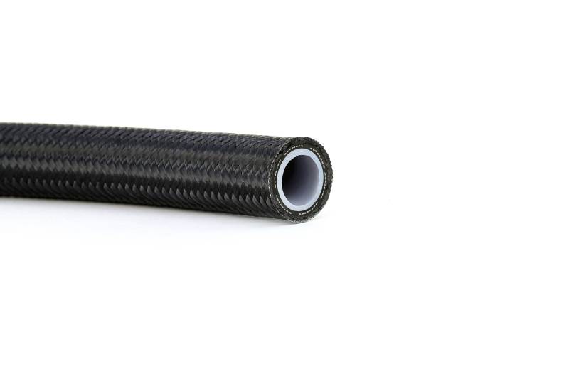 Reinforced PTFE hose with nylon braiding for HPS 350 Series fittings HPS 350 Series PTFE Flex Hoses are engineered to perform in tough environments. The PTFE inner layer is suitable for transportation of most fluids, including hydraulic brake fluid. Reinforced with a stainless steel braided layer, this hose can support working pressures that meet or exceed industry standards. The PVC outer sleeve allows the hose to maintain its flexibility and is abrasion resistant and non-marring, keeping surrounding parts safe from damage. Pair this hose with HPS' wide selection of 350 Series Reusable Hose End Fittings for a trouble-free installation. Size: AN-6. Sold by the foot. The black braided nylon outer sleeve keeps surrounding parts safe from damage. PTFE inner layer is compatible with water, coolant, air, oil, hydraulics, and most fuels. Temperature Rating: -58 deg f to +500 deg f (-50 deg c to +260 deg c).