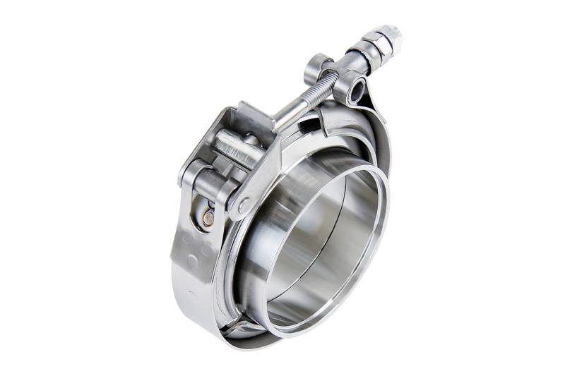 HPS V-band clamp with interlocking stainless steel flanges for 3" OD tubing. HPS Stainless Steel V-Band Clamp Kits with stainless steel flanges are a convenient and versatile clamping system for your automotive and industrial applications. This clamp features a quick release T-bolt to allow quick and easy installation without having to fully disassemble the kit. It is made of 100% 304 stainless steel for excellent weather and corrosion resistance. The 304 stainless steel V-band flanges feature a male and female side to automatically align the flanges and eliminate improper installation. The back side of these V-band flanges feature a recessed lip to help center your stainless steel tubing to the flange. This recess matches the ID of your 16 gauge tubing and allows for unrestricted flow. This product is ideal for exhaust piping, wastegates, and much more. 304 stainless steel quick release clamp for quick and convenient installation. Stainless steel flanges with interlocking male and female sides automatically align to eliminate improper installation. Back side of flanges feature a recessed lip to align your 16 gauge stainless steel tubing for welding. Includes 2 nuts (1 non-locking nut for fit up and 1 self-locking nut for final installation). Ideal for exhaust applications.