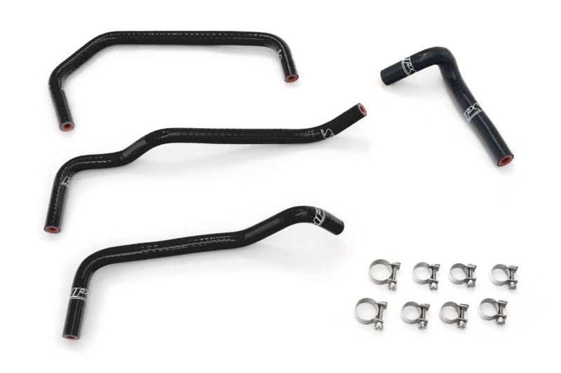 HPS Silicone Ancillary Bypass Coolant Hose Kit Your vehicle’s coolant hoses play a crucial role in the cooling system. Over time, these rubber hoses are exposed to high temperatures, engine heat, and chemicals contribute to the aging process and lead them to develop cracks, leaks, or become soft and mushy. The HPS Silicone Ancillary Bypass Coolant Hose Kit is designed to deliver ultimate durability and resistance to wear and tear for your thermostat bypass, throttle body, air control valve, and oil cooler hoses. These multi-ply reinforced hoses can withstand high temperatures of up to 350F and are less prone to cracking, swelling, or becoming brittle compared to traditional rubber hoses. In high-performance or racing applications, silicone hoses are often preferred as they are less likely to collapse under suction or burst under pressure, providing better reliability in situations where engine performance is crucial. Engineered using OEM data, these hoses are made to directly fit into your vehicle without the need for any modifications. This kit comes complete with 100% stainless steel hose clamps designed to be safe on silicone hoses and provide a leak-free seal. Upgraded replacement for ruptured or failing rubber OEM ancillary bypass coolant hoses. Engineered to withstand harsh high temperature and high pressure operating conditions. Max. temperature rating: 350F (177C). Includes HPS 100% stainless steel industrial grade embossed hose clamps which will not damage or cut through silicone hoses. Made with multi-ply polyester reinforced silicone and designed for exact vehicle fitment. Replaces OEM Part Numbers: BP4W-13-681B, BP4W-13-682, BP4W-15-536A, BP6D-15-261.