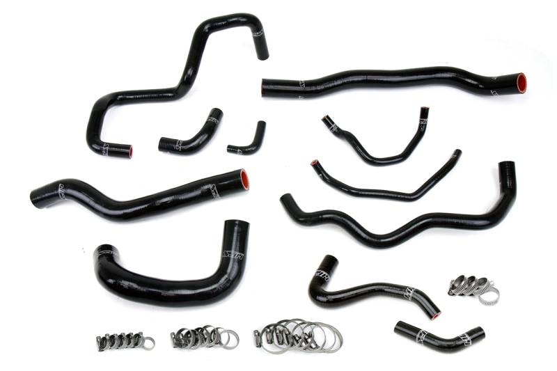 3-ply reinforced silicone, replaces rubber coolant hoses This HPS High Temp 3-ply Reinforced Silicone Coolant Hose Kit is designed to replace all of the stock OEM rubber coolant hoses that are known to harden and fail over time. With premium quality silicone and race inspired design, this hose kit can withstand the harsh, high temperature and high pressure operating conditions under the hood through a wide range of driving conditions. HPS silicone hose kits have all the correct bends and dimensions to perfectly fit as replacements for OEM rubber coolant hoses. Compared to the universal hoses from the local auto store, HPS silicone hose kits are much easier to work with. Maximum temperature rating: 350 degrees Fahrenheit. 100% stainless steel clamps are included for easy installation. Ideal upgraded replacement for all OEM rubber coolant hoses which harden and fail over time. Withstands harsh high temperature and high pressure operating conditions while maintaining peak performance during competition or daily driving. Max. temperature rating: 350F (177C). Includes HPS 100% stainless steel industrial grade embossed hose clamps which will not cut through silicone hoses. Engineered to ensure long lasting quality over stock rubber hoses. Replaces OEM PN: 9L3K915186, LF1715184E, LF171518YE, L3K913680A, L3K91554XB, L3M613680, L3K915260A, L3K915536.