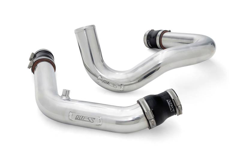 Upgrade replacement to OEM pipes, non-corrosive components, prevent boost leaks. The HPS Performance Lower Hot Side and Cold Side Charge Pipe Kit is the ideal replacement for your roadster's lower hot side and cold side charge pipes. Constructed from high-quality, 2.25" mandrel-bent and bead rolled aluminum tubing, this upgrade surpasses the limitations of the steel stock pipes. These superior pipes resist corrosion and maintain optimal airflow for efficient performance, even in demanding driving conditions. High-grade, 100% stainless steel embossed clamps ensure a secure, leak-free connection you can trust, eliminating the risk of blowouts. The kit incorporates heavy-duty, 4-ply reinforced silicone couplers designed to wit'stand extreme temperatures of up to 350°F. These durable replacements far outlast the stock rubber couplers, which dry, crack, and split over time.