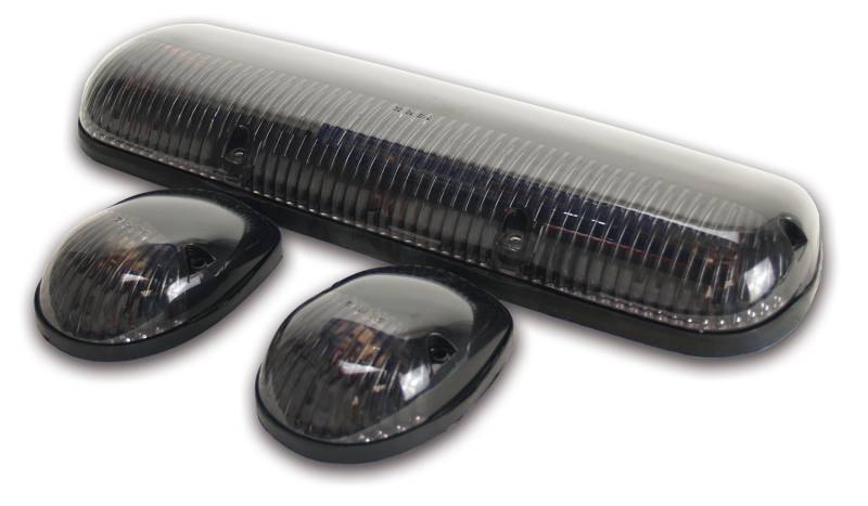 LED Smoke Hi-5 Cab Roof Light Kit, 02-07 GM Style Designed to match the look of factory 2002-2006 GM heavy duty pickup cab roof lights with the 3 light center cluster and individual outboard lights but using modern L.E.D.'s, Pacer's high quality cab roof lights feature smoked lenses that illuminate in amber to give the "big rig" look to light duty pickups and sport utility vehicles. A unique base conforms to curved and flat surfaces. Kit includes 3 light center cluster, 2 outboard lights and all necessary hardware and wiring. Ultra Bright Light