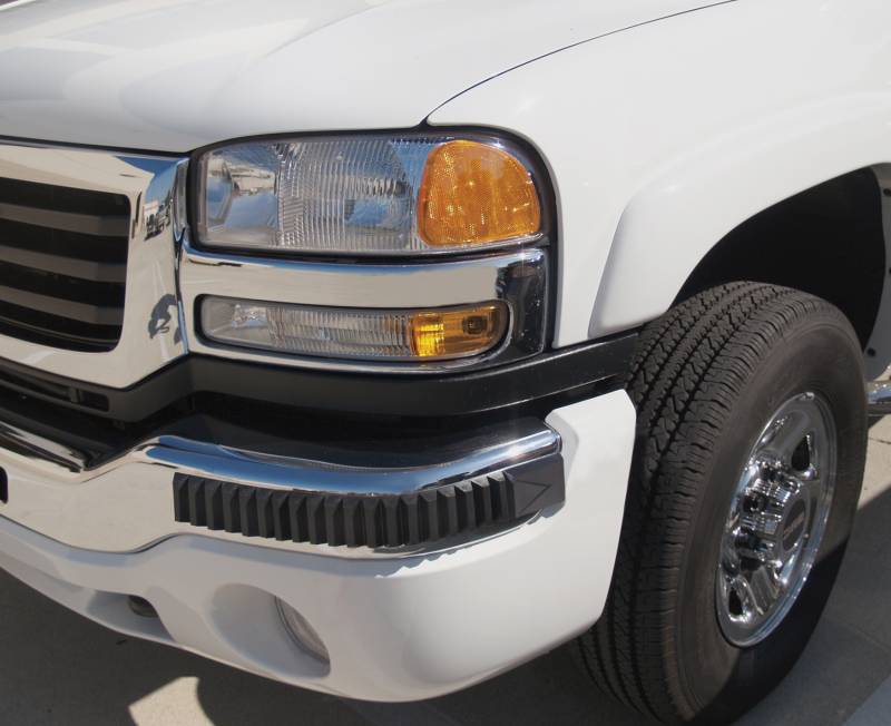 Heavy Duty Bumper Guards 28 1/2" Black, Pair Pacers Heavy Duty Bumper Guards are extra thick to provide more protection to vulnerable, damage prone truck bumpers. Featuring a serrated leading edge and measuring 7/8" thick, 2 3/8" wide and 28 1/2" long, they are finished in satin black to match O.E. trim. Easily mount using 3M self stick tape. Sold in pairs. Flexable UV Resistant PVC Rubber