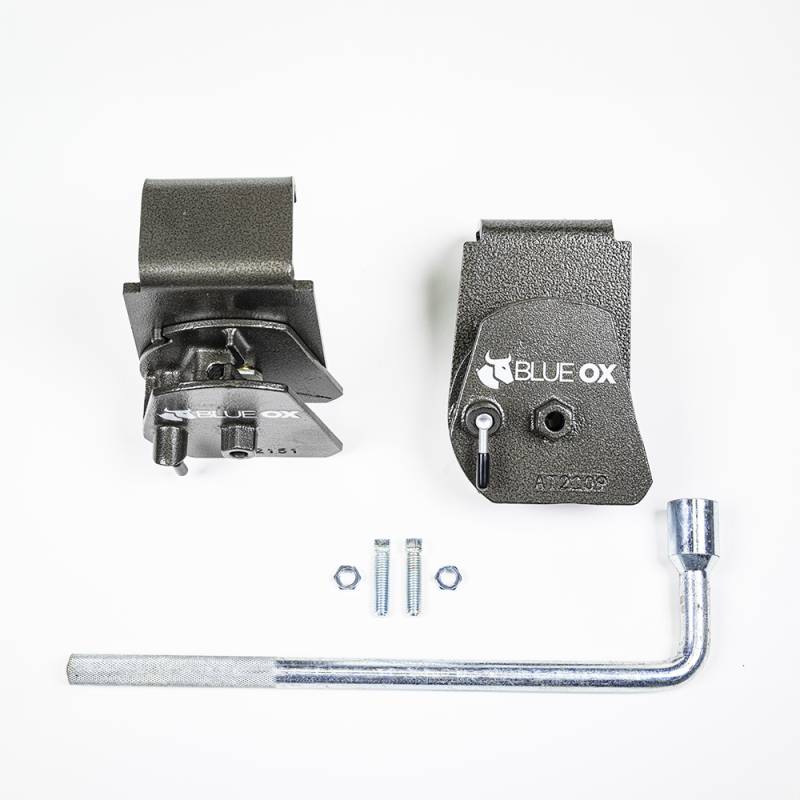 SwayPro Locking Pin Kit Bolt these rotating latches onto your trailers tongue with 8" frame to get maximum clearance for any items mounted above your trailer frame. Rotating design lets you quickly and easily lift the chains of your Blue Ox SwayPro weight-distribution system. Kit, Replacement Rotating Latch, Clamp-On Style for 8" Frame