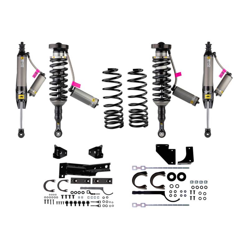 BP51 Kit FR 2.5 in/0-330 lb, RR 2 in/0 lb both on and off road. This suspension lift kit is tuned and matched for the Toyota 4Runner without KDSS to provide 2.5in of lift in the front, with a weight of 0-330lbs and provide 2in of lift in the rear with a weight of 0lbs. Tuned and matched integrated suspension kit allows for increased comfort and control with or without added weight Old Man Emu BP-51 struts and shocks Internal bypass design technology providing position sensitive damping On vehicle tuning with 10 levels of independent compression AND rebound adjustment Remote mounted oil reservoir to provide additional oil allowing for increased cooling and performance during extended periods of offroad use
