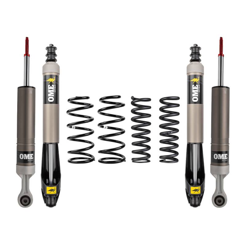 MT64 Kit FR 2.5 in/220-330 lb, RR 2 in/0 lb Old Man Emu offers a range of tuned and matched integrated suspension kits to ensure the right suspension is selected for how the vehicle is outfitted and the conditions it will encounter. Old Man Emu suspension systems are designed to enhance ride quality, ride control, load-carrying capacity, and ride height. When building an off-road vehicle, it's best to notate the heavy parts that you plan to add. Heavy components will slowly begin to compress your suspension which results in vehicle sag. Choosing an Old Man Emu integrated suspension kit will avoid sag and ride discomfort as our engineers have tuned and matched suspension components for a range of different weights. Old Man Emu has an offering of 3 different shock absorbers to ensure that you can find an integrated suspension kit to suit your every demand, vehicle outfit and road condition. This suspension lift kit comes with Old Man Emu MT64 shocks. Designed, engineered and manufactured by ARB’s specialized Old Man Emu suspension engineers, the MT64 is an expertly constructed blend of proven reliability and durability with added premium features, making it the perfect all-rounder. The MT64 has a massive internal bore of 64mm which gives our engineers a much larger scope for perfectly tuning the shock absorber for your vehicle platform. This results in a large increase in vehicle control and comfort. This suspension lift kit is tuned and matched for the Toyota 4Runner to provide 2.5in of lift in the front, with a weight of 220-330lbs and provide 2in of lift in the rear with a weight of 0lbs. Tuned and matched integrated suspension kit allows for increased comfort and control with or without added weight Old Man Emu MT64 struts and shocks Monotube design with a massive 2.8 inch body allowing for more oil and accurate shock tuning 6-position adjustable spring seat catering to a range of different vehicle setups Aerospace grade aluminum body dissipates heat fifteen times faster than steel, and increases protection against stone damage