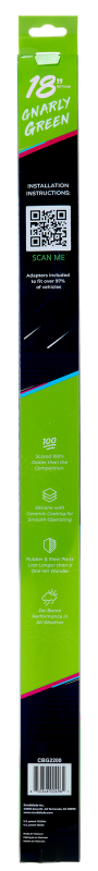 18" 450mm Green Silicone Shadeblade Wiper Blade Scoring 100% cooler than the competition, Shadeblade is an ultra premium wiper blade, with a slick black rubber covered frame for Da-Bomb performance in all weather. A low profile to prevent wind lift and ceramic coated silicone blades in your choice of six colors for a quiet, smooth wipe. Innovative dual-action cleaning system to scrub + clear rain, bugs and road debris. Easy no tool installation with included adapters (4) to fit over 97% of all vehicles on and off the road. Shade Blade is the coolest patented wiper on the block! Made from a premium Ceramic coated Silicone, offered in multiple colors and branded with a Scrubblade logo for a true aftermarket vibe. Choose your SHADE of Silicone! Innovative Scrubblade cleaning system removes rain and debris simultaneously Packaging that excit's the consumer EZ no tool installation