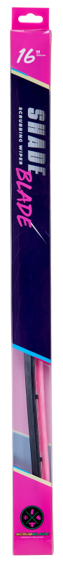 16" 410mm Pink Silicone Shadeblade Wiper Blade Scoring 100% cooler than the competition, Shadeblade is an ultra premium wiper blade, with a slick black rubber covered frame for Da-Bomb performance in all weather. A low profile to prevent wind lift and ceramic coated silicone blades in your choice of six colors for a quiet, smooth wipe. Innovative dual-action cleaning system to scrub + clear rain, bugs and road debris. Easy no tool installation with included adapters (4) to fit over 97% of all vehicles on and off the road. Shade Blade is the coolest patented wiper on the block! Made from a premium Ceramic coated Silicone, offered in multiple colors and branded with a Scrubblade logo for a true aftermarket vibe. Choose your SHADE of Silicone! Innovative Scrubblade cleaning system removes rain and debris simultaneously. Packaging that excit's the consumer. EZ no tool installation.