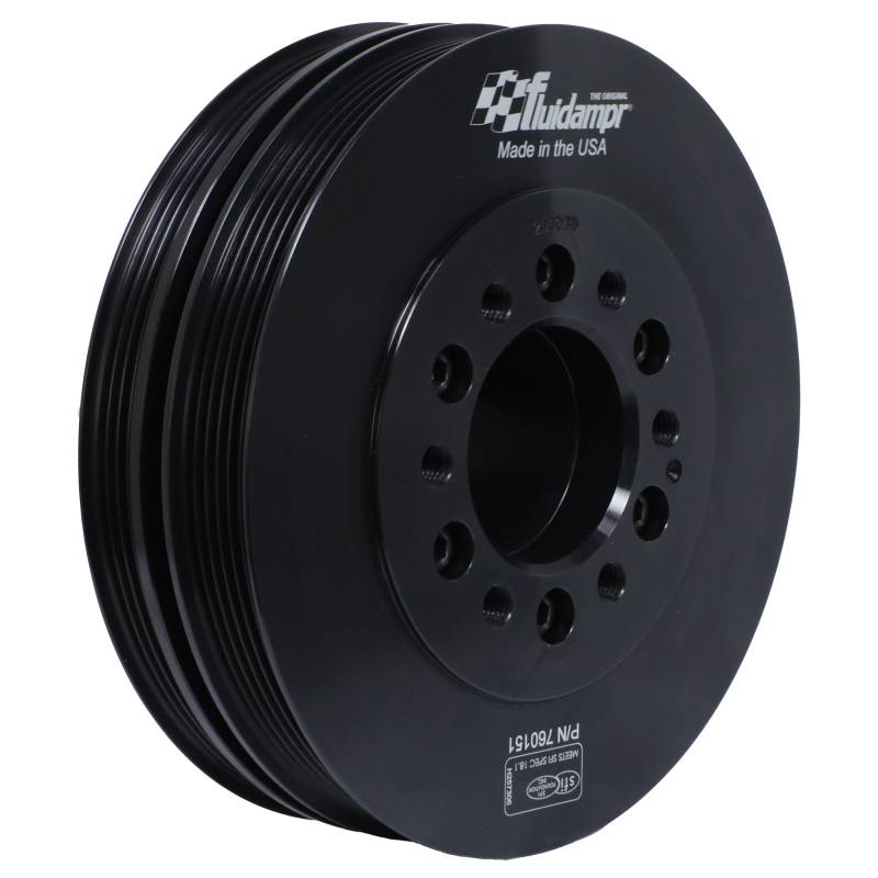 Harmonic Balancer - Fluidampr - GM L8T - L87 - L84 Protect your engine. Modifications can compromise your stock harmonic balancer. Install a Fluidampr performance damper early for best durability. Superior viscous damper design controls harmful torsional vibration across the entire rpm range. Reduce wear on engine components. Reduce risk of crankshaft failure. Improve timing. Unleash lost torque and horsepower. Precision CNC machined and balanced high-grade steel components. Corrosion resistant black zinc finish with engraved markings. No maintenance required. Trusted by leading engine builders worldwide. SFI 18.1 certified. Made in USA. Broad RPM range protection. Reduce risk of crankshaft failure. Reduce wear on critical engine parts. Unleash lost torque & horsepower. No maintenance required.
