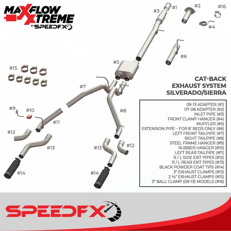 SpeedFX 50100 MaxFlow Xtreme Cat-Back Exhaust Kit 3" Inlet Dual Exit Black Tips