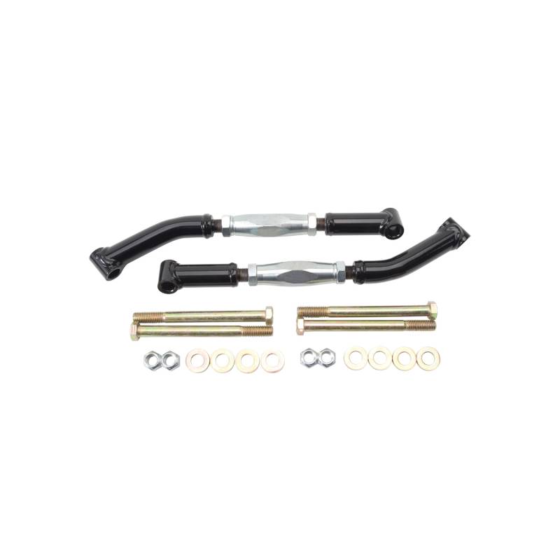 Frame Brace, Adjustable 68-72 GM A-Body QA1 Adjustable Rear Frame Supports are engineered to improve handling, traction and all around suspension performance by eliminating unwanted chassis flex and reinforcing the upper and lower trailing arm mounts. Made from 1'' diameter cold rolled steel tubing, they feature zinc plated adjustable threaded sleeves for adjusting the preload in the rear trailing arm mount after installation. Designed to clear stock and aftermarket mufflers and includes all of the necessary hardware for an easy installation. Improve handling Eliminate unawanted chassis flex All installation hardware included Made in the USA