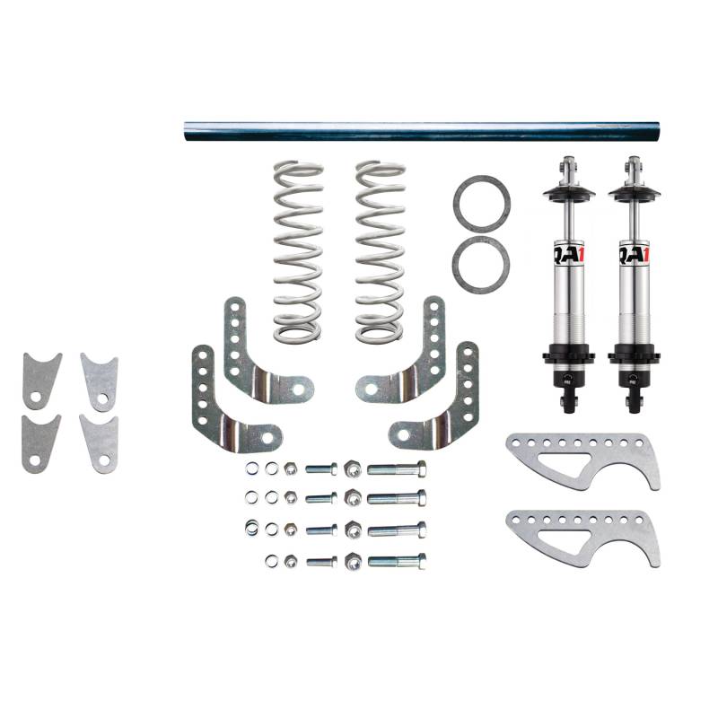 Kit Pro Rear C-O S-Adj 12-110 Upgrade your rear end with QA1's Pro-Rear System. Available in double adjustable, single adjustable and ride sensitive valving non-adjustable options,each adjustment has been carefully defined to provide the ideal horse curve to maximize performance. With evenly spaced valving changes throughout the adjustment range, there are no jumps when adjusting between any two clicks. These Pro-Rear Systems are commonly used in drag racing, street performance and street rod applications. Available in Simultaneous Compresion and Rebound Single Adjustable (DS), Independent Compression & Rebound Double Adjustable (DD) or Ride Sensitive Non-Adjustable (ALN), Coil-Over, Lightweight Aluminum, Ride Height Adjustable, Spring Mounting Hardware Included, 100% Dyno Tested and Serialized, Revalveable and Rebuildable by the QA1 Factory or QA1 Authorized Service Centers, Precision Machined Aluminum Piston with PTFE Piston Band, 5/8" Centerless Ground, Hard Chrome Plated, Solid Piston Rod, Three Step Sealing System, Available to Fit 3" or 3.25" Diameter Axle Tubes, Made in the USA, , Kit includes:, (2) Proma Star Shocks or Aluma Matic Shocks, (2) Linear or Variable Rate Springs, All Mounting Hardware. Excellent DIY solution for drag, street performance & street rodders alike Available with MOD Series, double, single or non-adjustable valving options All mounting hardware included Made in the USA