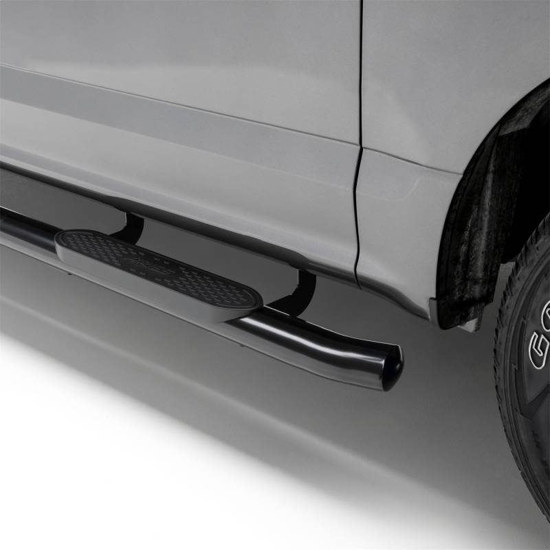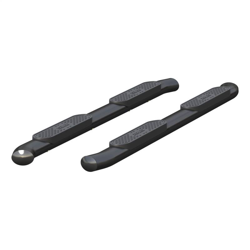 4" Black Steel Oval Side Bars, Select Toyota Tacoma Double Cab When you start and end your day turning the ignition of your truck, unreliable footing just is not an option. You need a step that can bear weight with ease, provide comfortable footing and look good doing it. ARIES 4" oval side bars are sleek, strong and custom-fitted to be a highly functional extension of your truck. ARIES 4" oval side bars are made with strong 4" elliptical tubing and are available in two different finish options to allow you full customization: polished stainless steel and black powder coat carbon steel. This set of side bars is constructed from high-strength carbon steel for a solid step, and they feature a dual-layer E-coat and semi-gloss black powder coat finish for excellent protection against scratching, chipping and peeling. Something that sets the ARIES 4" oval side bar apart from all others is its blended end caps and OE-style bends. Rather than capping our side bars with a plastic cap, we offer a blended end cap for a smooth, finished appearance. We also equip the ends with a special 20-degree bend and original equipment styling to perfectly contour to your vehicle. ARIES 4" oval side bars are fitted with raised step pads to provide a wide stepping surface. The polypropylene construction will not crack over time, and because it has a textured grip, the surface is highly resistant to slips and skids, even when wet. To add an extra element of class to our oval sides, we also fit each one with a stainless steel insignia bearing the ARIES name. Installation of ARIES 4" oval side bars is quick and easy with custom-fitted mounting brackets and no drilling necessary. These nerf bars fit select model years of the Toyota Tacoma Double Cab (see application info to verify fitment). 20-degree bends to contour to the body of the vehicle. Seamless, welded end caps for a superior, finished look. Raised, custom, non-skid step pads for safe, comfortable entry and exit. High-strength carbon steel construction. Durable E-coat and semi-gloss black powder coat finish for solid rust resistance.