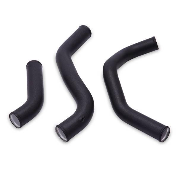Intercooler Pipe Kit, Black, fits Ford F-150 3.5L EcoBoost 2011-2014 The Mishimoto 2011?2014 F?150 EcoBoost Intercooler Pipe kit is an ideal upgrade in reliability and performance. The Mishimoto kit features cold-side and hot-side piping in polished aluminum or wrinkle black. Accompanied by silicone couplers with DuraCore? technology, Mishimoto's F?150 EcoBoost intercooler piping is engineered to eliminate restrictive bends while improving durability and airflow. Compared to normal silicone, DuraCore? provides superior resistance to heat, pressure, fuel, and oil. This effectively increases the life of our couplers by preventing leaks and blowouts. To add even more reliability, this kit includes Mishimoto Constant Tension T?bolt clamps for an accurate and secure installation. Upgrade to the Mishimoto 2011?2014 F?150 EcoBoost Intercooler Pipe Kit and give your truck the efficient, unimpeded airflow it needs to make up to 15 more horsepower and 21 Ft/lbs more torque. To further improve your charge?air system, pair this pipe kit with the Mishimoto 2011?2014 F?150 EcoBoost performance intercooler. Of course, this kit is backed by our Mishimoto Lifetime Warranty, so you never need to worry about buying another intercooler pipe kit again. 2.5-in Aluminum hot-side intercooler pipes replace stock plastic pipes 3-3.5-in Aluminum cold-side intercooler pipes replace stock plastic pipes No trimming of the engine cover or modifications necessary for installation