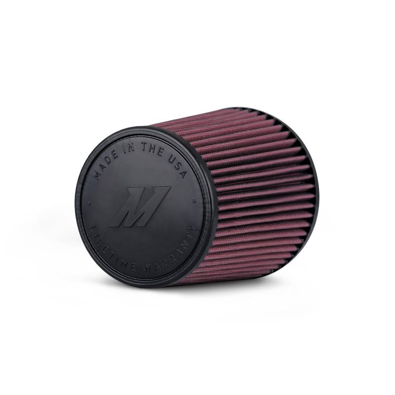 Mishimoto Performance Air Filter, 4in Inlet, 7in Filter Length, Red Provide your performance vehicle with superior air filtration and optimal airflow with a Mishimoto Performance Air Filter! Mishimoto oiled air filters can be cleaned and reused, which allows for a lifetime of consistent, efficient performance for extended use on the street, track, or trails. Mishimoto filters feature an exceptionally robust construction and include a high-quality clamp for installation. These filters are made in the USA and include the Mishimoto Lifetime Warranty High-quality filter provides optimal airflow and superior filtration Fully cleanable and reusable for a lifetime of service Robust construction for use on the street, track, or trails