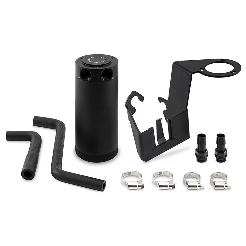 Baffled Oil Catch Can, PCV Side, fits Nissan 350Z 2003-2006 / Infiniti G35 The VQ35DE has long since been the workhorse under the hood of plenty of Nissan and Infiniti products, so give those intake components the protection they deserve with the Mishimoto 2003-2006 Nissan 350Z and 2004-2007 Infiniti G35 Direct Fit Catch Can Kit. These cars were built to be driven to their limits, but the unfortunate side effect of those harsh driving conditions is blow-by., which makes its way back through the intake system, and can build carbon on these components, reducing the power and efficiency of your G or Z. Our complete kit utilizes a single 6061 aluminum tall catch can that mounts in line with the VQ35DE?s PCV system using chemical resistant, OEM style flat black hoses and CNC-machined aluminum fittings. Our can is secured with a sturdy, application specific bracket which also doubles as a new mount for your Nissan or Infiniti?s power steering reservoir. Where our 350Z and G35 Direct Fit Catch Can Kit adds a layer of stylish protection to your engine bay, It's what?s on the inside of the can that counts. Our tried and true internal baffle is specifically designed to aid in the condensation and collection of oil droplets and fuel vapors passing through the PCV system. We've also incorporated internal air diverters to ensure a smooth and constant flow of the PCV pressure through our catch can. As an added line of defense, each one of our catch cans has a 50-micron bronze filter installed to trap any potential rogue oil droplets from escaping into the return line. Each one of our cans are sealed with Viton O-rings to ensure what?s collected in our catch can stays in the catch can. Finally, every one of our 2003-2006 Nissan 350Z and 2004-2007 Infiniti G35 Direct Fit Catch Can Kits is shipped with the Mishimoto Lifetime Warranty. Our catch cans are different from most air-oil-separator (AOS) systems on a few levels. First, our catch cans are not heated. This means that all of the blow-by is able to condense in the can, inclu Installs in under 1 hour Single can mounts in line with the PCV system to separate oil from air using a 50-micron bronze filter Catch can has an extra large 7.5oz capacity for longer servicing intervals