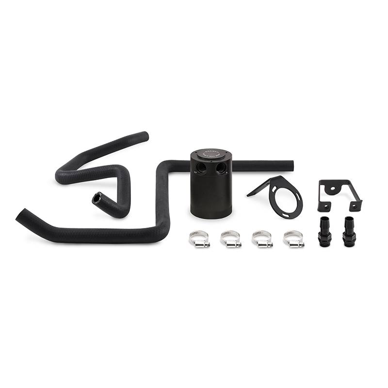 Baffled Oil Catch Can, Black, PCV Side, fits Dodge Charger 5.7L Hemi 05-14 Give your 5.7L Hemi the protection it deserves with the Mishimoto Direct Fit catch can specifically designed for the 2005-2014 Dodge Charger and Magnum, 2008-2014 Dodge Challenger, and 2004-2014 Chrysler 300C. Even though It's the ?baby? V8 in Mopar?s line-up, the 5.7L still packs quite the punch. It also produces a significant amount of blow-by, which over time will build carbon on the intake components and throttle your muscle car?s power and efficiency as a result. Our catch can kit installs in line with the PCV system using an application specific bracket and chemical resistant, OEM styled hoses to intercept the contaminated crankcase pressure before making its way to the intake tract. Our tired and true compact catch can features an internal baffle designed to aid in the condensation of oil droplets and fuel vapors, sending only clean air back through the Hemi. As an added line of protection, our cans include a 50 micron bronze filter to capture any rogue blow-by droplets without sacrificing flow. Finally, our 3 oz. cans and CNC-machined aluminum fittings are sealed with Viton O-rings to ensure that all collected blow-by stays in the can. Our Mopar 5.7L catch can kit is available with the option of a black or polished can, and includes the Mishimoto Lifetime Warranty. Our catch cans are different from most air-oil-separator (AOS) systems on a few levels. First, our catch cans are not heated. This means that all of the blow-by is able to condense in the can, including low-octane oil vapors and contaminated fuel vapors. Most AOS systems also drain the blow-by back into the oil pan, while our catch cans trap the blow-by and keep it out of the engine permanently. If you?ve seen what We've seen in the bottom of our catch cans, you won?t want that draining back into your oil either. Mounts in line with the PCV system to separate oil from air using a 50 micron bronze filter Installs in under 30min Application specific bracket mounts the can in an easily maintained location inside the engine bay