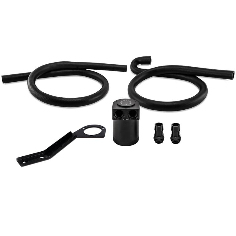 Baffled Oil Catch Can, CCV Side, fits BMW N54 2007-2010 The Mishimoto BMW N54 Baffled Oil Catch Can is designed and engineered to reduce carbon buildup, a common issue with the direct fuel injection N54 engines. The Mishimoto BMW N54 catch can kit uses the proven engineering from the Mishimoto 2-Port Compact Baffled Oil Catch Can with a bronze filter, and internal baffled to better separate the oil from the crankcase vapors. The engineers at Mishimoto designed a CNC-machined lid which features large inlet/outlets in order to match the inner dimension of the CCV hose. This baffled oil catch can will defend your intercooler, intake system, and VANOS system from oil-blowby and help maintain proper octane levels to reduce potential detonation. The kit comes with two direct-fit hoses, which require no modification to the engine cover, and one direct fit mounting bracket that not only is extremely easy to install but also mounts the can in a serviceable location! Two CNC-machined aluminum, in barb fittings connect the hoses to the can. Like all of our products, this baffled catch can kit comes with the Mishimoto Lifetime Warranty! Our catch cans are different from most air-oil-separator (AOS) systems on a few levels. First, our catch cans are not heated. This means that all of the blow-by is able to condense in the can, including low-octane oil vapors and contaminated fuel vapors. Most AOS systems also drain the blow-by back into the oil pan, while our catch cans trap the blow-by and keep it out of the engine permanently. If you've seen what We've seen in the bottom of our catch cans, you won't want that draining back into your oil either. Single 2-Port Compact Baffled Oil Catch Can with application-specific lid mounts in line with the CCV system to separate oil particles using 50 micron bronze filter Application-specific bracket mounts the can in a serviceable location Direct fit hoses allow for installation with no modification to engine cover