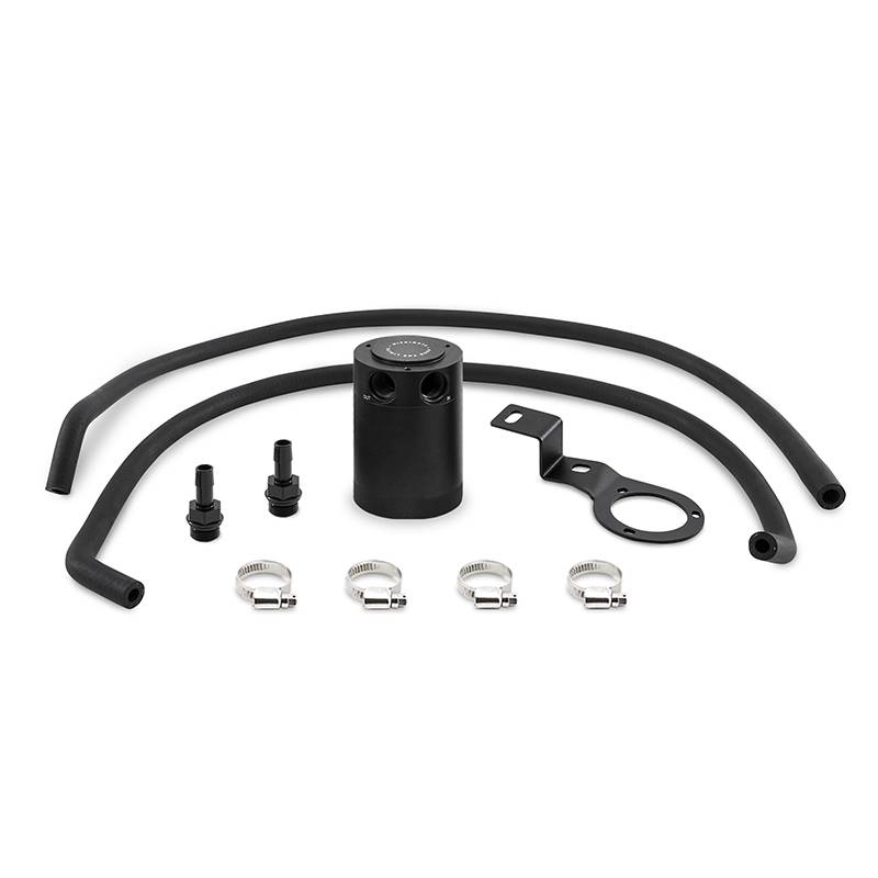 Baffled Oil Catch Can, PCV Side, fits Subaru WRX 2015-2021 The Mishimoto 2015-2021 WRX PCV Side Baffled Oil Catch Can System is designed and engineered to reduce carbon buildup, a common issue with direct fuel injection engines such as the FA20-DIT. The 2015-2021 WRX oil catch can system includes one patent pending Mishimoto Compact Baffled Oil Catch Can, designed to separate oil particles from the PCV air that would normally be routed back to your intake. The internal air diverter increases air turbulence and ensures all the oil sinks to the bottom of the can, leaving nothing but clean air to pass through the 50-micron bronze filter. An internal baffle keeps the collected oil from splashing around under race conditions. The 100-percent billet, 6061 aluminum cans include two black CNC-machined aluminum fittings and direct-fIt'steel powder-coated brackets which mount the cans in serviceable locations. This makes maintaining your 2015-2021 WRX system a breeze, as the cans are also 100-percent washable, unlike many others that require you to replace your filtration system. To connect the cans to your PCV system, the Mishimoto 2015-2021 WRX Baffled Oil Catch Can System includes application-specific hoses keeping your engine bay looking clean! Whether you are entering your 2015-2021 WRX in the local rallycross, or lapping at your next track day, trust Mishimoto and our line of 2015-2021 WRX parts to keep your WRX cool. This kit, like our entire line of 2015-2021 WRX parts, includes the signature Mishimoto Lifetime Warranty. Our catch cans are different from most air-oil-separator (AOS) systems on a few levels. First, our catch cans are not heated. This means that all the blow-by can condense in the can, including low-octane oil vapors and contaminated fuel vapors. Most AOS systems drain the blow-by back into the oil pan, while our catch cans trap the blow-by and keep it out of the engine permanently. If you've seen what We've seen in the bottom of our catch cans, you won't want that draining back into your oil either. Direct-fit bracket mounts can in serviceable location Single can mounting in line with the PCV system separates oil particles using 50-micron bronze filter Defends intercooler, intake system, and essential components from oil blow-by