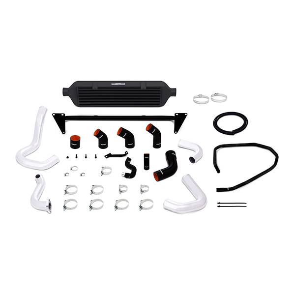 Subaru WRX Front-Mount Intercooler Kit, 2015-2021 Black Intercooler Designed for applications that demand the greatest airflow and cooling capabilities, this Mishimoto WRX Front-Mount Intercooler Kit will provide your Subaru with the ability to make the most horsepower and torque possible. This intercooler features a large 28in core that provides maximum cooling without excessive pressure drop that will wear out any turbocharger over time. The Mishimoto WRX front-mount intercooler features smooth cast end tanks that are CFD tested for maximum airflow with no sharp walls or bends that disrupt airflow. The intercooler provides the best airflow and heat-exchange properties for those time-attack laps, or a 10-second blast down the quarter mile. The Mishimoto Subaru WRX Front-Mount Intercooler also features four mandrel-bent aluminum pipes for optimum airflow. The hot-side pipes are 2.25inin in diameter to keep airflow velocities high, giving your car an instant response without excessive throttle lag that plagues many front-mount intercooler designs. The hot-side pipe also features a CNC-machined flange for a leak free connection to the turbo. The cold side of the system features 2.5in to 2.75in mandrel-bent aluminum tubing for maximum airflow, and to match the diameter of your throttle body. This 2015 WRX front-mount intercooler kit contains everything needed for a worry-free installation, including an application-specific crash bar that both supports the intercooler and mounts to existing points on the vehicle. No cutting of the front bumper or drilling is required to install the crash bar and intercooler. The kit includes all necessary mounting brackets and couplers, including a new bracket for the air intake. Like all Mishimoto products, this WRX front-mount intercooler is backed by our Mishimoto Lifetime Warranty. 3.5-in Thick intercooler design optimized for maximum flow Designed to work with Mishimoto Performance Air Intake and stock intake No modification to front bumper and retains stock fog lights