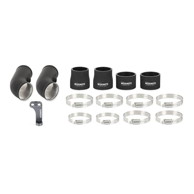 Performance Charge Pipe Kit, Micro Black, fits BMW F1X M5/M6 2012-2018 If you own an F10 or F13 M5/M6, chances are you’ve already thought about modifying it. A tune and increased boost pressure are usually one of the first mods done, but the factory plastic charge pipes may throw a wrench in your plans. The factory plastic charge pipes are a known weak link in the intake system and it’s not uncommon for them to split at the plastic welds by the turbo or completely burst along the seam, leaving you with a frustrating boost leak. The Mishimoto F1X M5/M6 Charge Pipes are a durable, full aluminum construction, expertly TIG-welded to ensure a smooth and strong airflow path for the S63’s boost. Our charge pipes are specifically designed to deliver optimal airflow with a more uniform shape from turbo to intercooler without sacrificing fitment. To provide the utmost perfect fitment, along with the charge pipes, we also include a CNC-machined 6061 aluminum bracket to hold the metal coolant lines that are supported by the factory intake tubes. Our charge pipe kit also includes a pair of matte black silicone couplers for a secure and stock styled connection to the air-to-water intercooler. The Mishimoto F1X M5/M6 Charge Pipes include the Mishimoto Lifetime Warranty for a worry-free installation. Full aluminum TIG-welded construction for maximum durability Holds up against increased boost pressure better than factory plastic pipes Includes bung for simple integration of methanol injection