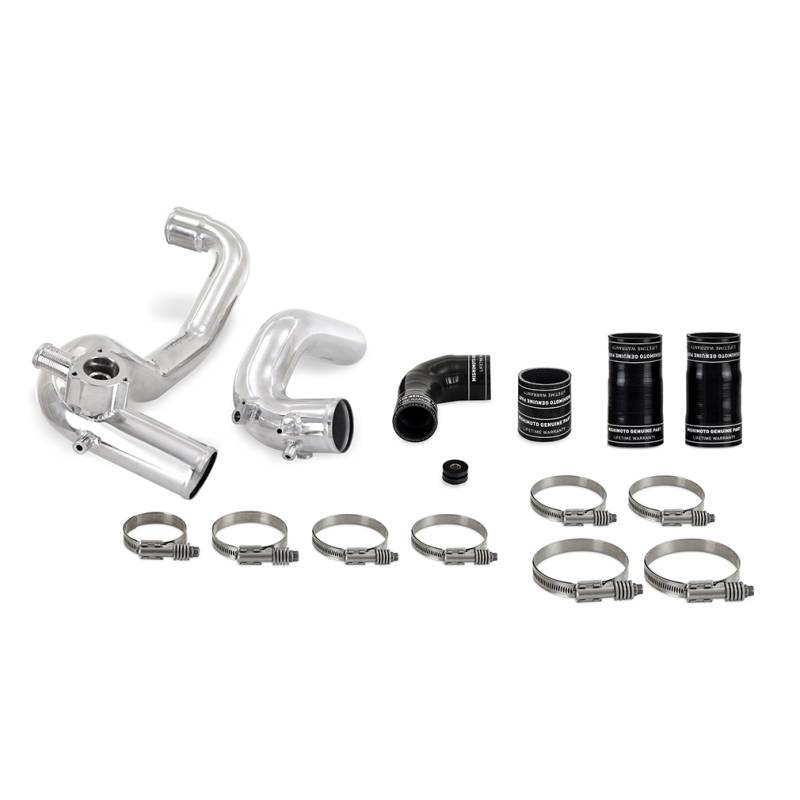 High-Mount Intercooler Pipe Upgrade Kit, Fits Ford Bronco 2.3L 2021+, Polished Mishimoto has developed a direct-fit intercooler pipe upgrade kit for the 2021+ Ford Bronco 2.3L EcoBoost that allows you to maximize the performance potential of your 2.3L Bronco. This pipe kit is specifically designed for customers who have previously purchased the Mishimoto performance high-mount intercooler and would like to couple it with the Mishimoto pipe kit. This kit includes all the components you will need to upgrade your setup to the full Mishimoto charge air system.---- Our kit replaces the weak and unattractive plastic piping with high-flowing, durable aluminum piping and silicone boots with DuraCore technology. The Mishimoto intercooler pipes flow up to 61-percent better than the stock pipes, allowing your 2.3L EcoBoost to breathe freely and make the most of its turbo. When combined with our high-mount intercooler, the charge air system produces power gains of 4.5 HP and 10.8 lb.-ft of torque. DuraCore boots coupled with constant-tension worm gear clamps provide superior strength and blowout resistance, ensuring boost always makes it to its destination. Available with a sleek polished finish or powder-coated in stealthy wrinkle black, these pipes are a great addition to every 2.3L Bronco from daily driving to the office, to trailblazing through the woods. The included upgrade couplers provide unrestricted flow from the pipes to the intercooler, maximizing flow and performance.----As with all Mishimoto products, this 2021+ Ford Bronco 2.3L EcoBoost intercooler pipe kit is backed by our Mishimoto Lifetime Warranty. Up to 60-percent less restrictive than stock pipes Dyno-proven power gains of 4.5 HP and 10.8 lb-ft. of torque on stock tune Includes DuraCore boots for optimal flow between high-mount intercooler and pipes