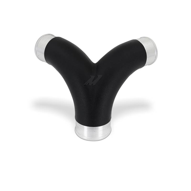Intercooler Pipe Kit, Black, fits Ford Bronco 2.7L 2021+ Mishimoto has developed a direct-fit intercooler pipe upgrade kit for the 2021+ Ford Bronco 2.7L EcoBoost that allows you to maximize the performance potential of your 2.7L Bronco. This pipe kit is specifically designed for customers who have previously purchased the Mishimoto performance stock location intercooler and would like to couple it with the Mishimoto pipe kit. This kit includes all the components you will need to upgrade your setup to the full Mishimoto charge air system.----Our intercooler pipes are constructed from cast and mandrel-bent aluminum for unsurpassed durability. Unlike the stock plastic pipes, our cast-aluminum hot-side Y-pipe and throttle body inlet provide superior resistance to cracking after thousands of heat cycles. For even more durability, we've replaced the factory rubber sections with mandrel-bent aluminum for significantly increased boost tolerance. Serrated coupler connections at the Y-pipe and throttle body ensure your boost stays where you want it under even the most extreme conditions.----But durability isn't the only benefit these pipes offer. The Mishimoto performance intercooler pipes reduce restriction by up to 34.2-percent over the stock pipes. That increase in flow allows your Bronco to pull in more air for power gains of over 13 HP and 16 lb.-ft. of torque on the stock tune when added to the Mishimoto stock location intercooler.----If you're ready to let your 2021+ Ford Bronco 2.7L EcoBoost breathe as free as it can run, these Mishimoto Performance Intercooler Pipes are for you. And, like all Mishimoto products, they're backed by our Lifetime Warranty, so you can drive easy knowing we've got you covered. Up to 34.2-percent less restrictive than stock pipes Dyno-proven power gains of 13.6 HP and 16.7 lb-ft. of torque on stock tune 2-1/4-inch to 2-1/2-inch hot-side piping and 2-3/4-inch cold-side piping