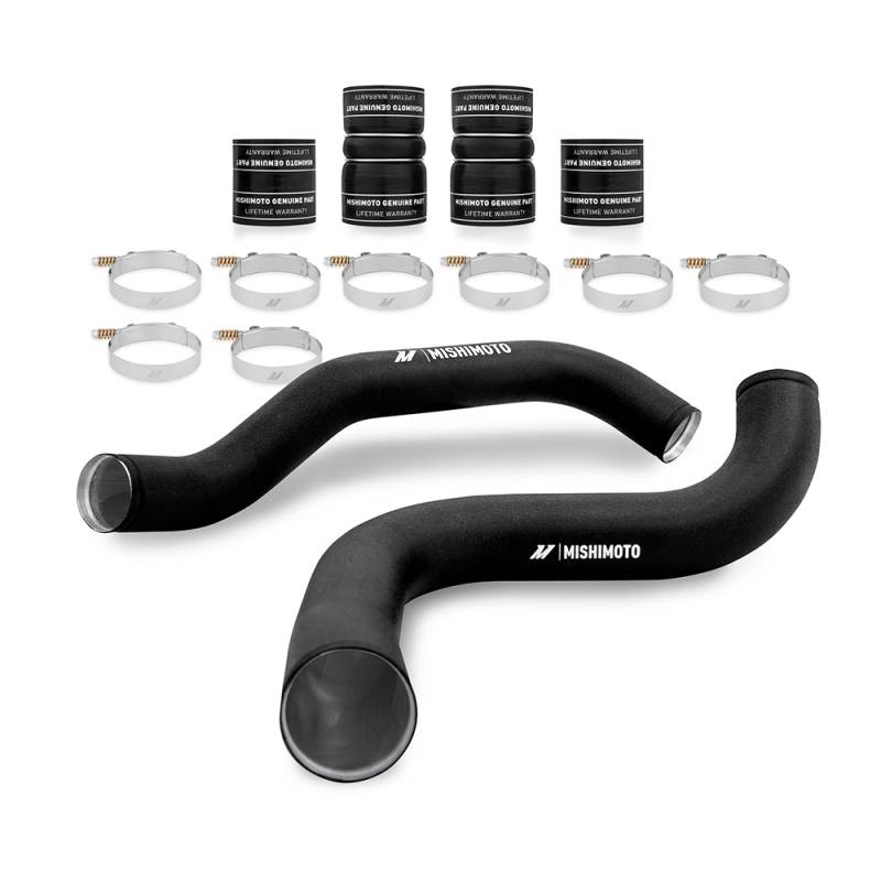 Ford 7.3L Powerstroke Intercooler Pipe and Boot Kit, 1999-2003 Give your Ford Super Duty the durability boost it deserves with the Mishimoto Intercooler Pipe and Boot Kit for the 1999-2003 Ford F-Series 7.3L Powerstroke. These workhorse turbodiesels produce mounds of boost pressure to churn out the serious torque that you need. This abuse takes its toll on the intercooling system, especially the piping. The Mishimoto pipe and boot kit replaces the stock system with a pair of tough, mandrel-bent aluminum pipes for both the intercooler's hot and cold sides for maximum durability. This kit includes Mishimoto Silicone Boots with DuraCore technology. Mishimoto DuraCore technology is the synthetic material that comprises the innermost layer of all Mishimoto Silicone Diesel Boots. Compared to normal silicone, DuraCore provides superior resistance to heat, pressure, fuel, and oil. This effectively increases the life of our boots by preventing leaks and blowouts. The kit includes Mishimoto Constant-Tension T-bolt Clamps for accurate and consistent holding power to add even more reliability. For the best performance, make sure to pair this kit with our Mishimoto Ford 7.3l Powerstroke Performance Intercooler. The Mishimoto Intercooler Pipe and Boot kit for the Ford F-Series 7.3L Powerstroke is available in a polished and wrinkle-black powder-coated finish and includes the Mishimoto Lifetime Warranty for a worry-free installation. Mandrel-bent polished aluminum pipes for maximum durability Includes Mishimoto Silicone Boots with DuraCore Technology and Mishimoto Constant Tension T-bolt Clamps Installs in under one hour