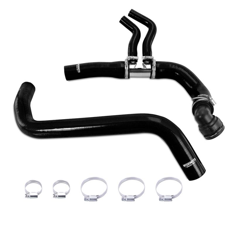 Silicone Radiator Hose Kit, Black, fits Ford F-150 3.5L EcoBoost 2011-2014 There's no worse feeling than walking out to your truck and seeing a puddle of coolant under it. As vehicles grow older, the rubber components under the hood start to degrade. It's only a matter of time before the radiator hoses begin to leak.The best time to replace a leaking hose is before it starts leaking. That's why Mishimoto has created a silicone radiator hose kit for your 2011-2014 Ford F-150 3.5L EcoBoost or 3.7L V6. Built with five layers of durable silicone embedded with heat-resistant fibers, these hoses will withstand the test of time. These Mishimoto silicone hoses include a pre-installed quick disconnect on the lower hose to make installation easy. We've also replaced the leak-prone plastic connector with durable stainless steel for long-lasting reliability and leak-free operationThis kit includes both the upper and lower radiator hoses and is available in black, blue, or red. Plus, all our products are backed by our Lifetime Warranty, so you'll never have to see another coolant puddle again. Direct-fit for 2011-2014 Ford F-150 3.5L EcoBoost and 3.7L V6 Replaces stock plastic connectors with stainless steel for greater resistance to heat and pressure Constructed from five layers of silicone with heat-resistant embedded fibers