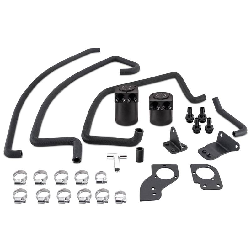 Baffled Oil Catch Can System, fits Nissan 350Z 2007-2009 VQ35HR The VQ35HR is the ultimate evolution of the VQ35 series. The HR was built to be driven at the limit, but over a decade of daily driving and banging the limiter takes its toll. As the VQ35HR ages, it produces more and more blow-by, which makes its way back through the intake system and into the cylinders. More blow-by equals a higher chance of detonation, and the high-revving, high compression HR can't afford more risk. That's why Mishimoto has developed a baffled oil catch can for your VQ35HR-powered 2007-2009 Nissan 350Z or Infiniti.Our complete kit utilizes two 6061-aluminum catch cans that mount in line with the VQ35HR's PCV and CCV systems for protection from idle to wide-open throttle. Blow-by is routed away from the intake and into our catch cans using direct-fit, chemical-resistant lines and CNC-machined aluminum fittings. Our cans are suspended in the engine bay by sturdy 3mm-thick steel brackets that can withstand everything from dirt drops to potholes without flinching.Inside the catch cans, air diverters and a baffle help condense oil, fuel, and water, while a 50-micron bronze filter further cleans crankcase gases before returning them to your intake. Like all our 350Z products, this baffled oil catch can kit for the 2007-2009 350Z VQ35HR is backed by our Mishimoto Lifetime Warranty for a lifetime of protection. So, whether you're hitting the track or the street, protect your VQ35HR with this Mishimoto baffled oil catch can kit. Dual-can system captures blow-by from both CCV and PCV systems Sturdy 3mm-thick steel brackets withstand rough roads and track abuse Includes pre-molded, stock-style hoses for simplified install