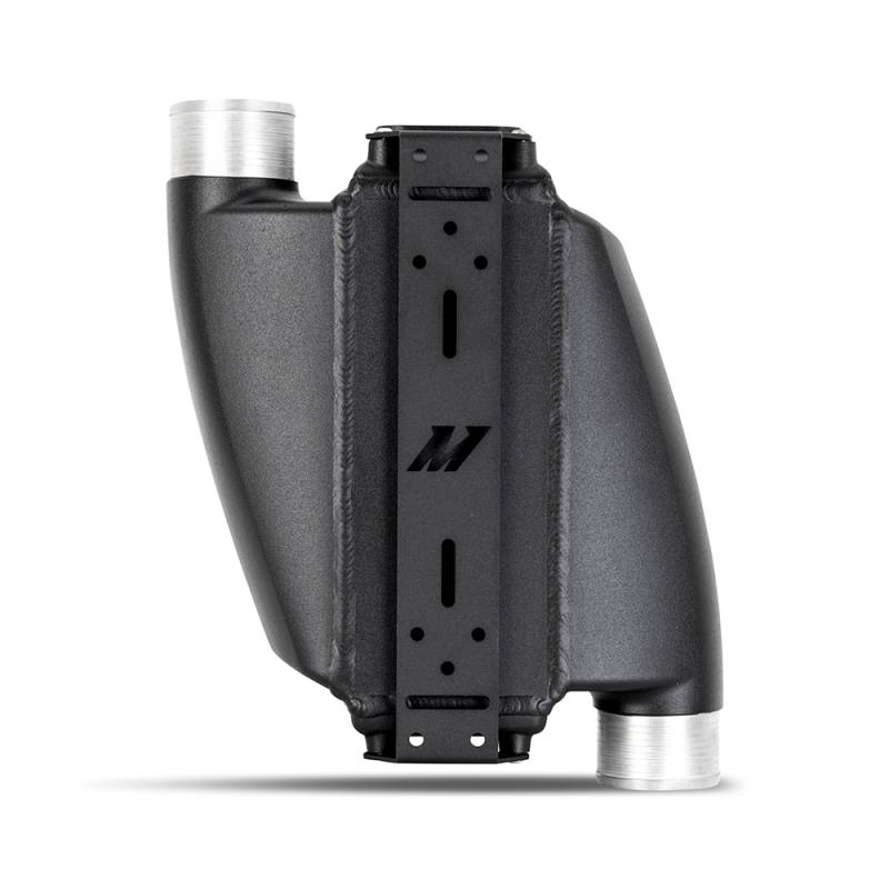 Air-to-Water Intercooler, Dual-Pass Coolant, 1000HP-Opposite Side Inlet/Outlet Keeping air intake temperatures low is the key to decreasing the impact of heat soak, reducing detonation, and producing consistent power output. As a result, Intercooler systems have evolved substantially over the last decade, bringing liquid-to-air intercoolers into popularity. To help bring the compact efficiency of air-to-water intercooling to your project, Mishimoto has developed a full lineup of high-performance air-to-water intercoolers. Our air-to-water intercoolers are available in single or dual-pass coolant flow configurations, each with multiple bar-and-plate core sizes and your choice of same-side or opposite-site outlets. These intercoolers support builds producing up to 1500 horsepower. When it comes to our intercoolers construction, robust is an understatement. Each intercooler features 5mm-thick cast-aluminum end tanks that are custom engineered for superb airflow, reducing overall pressure drop through the cooler. These tanks are professionally TIG-welded to our core, resulting in a pressure tolerance of up to 100 psi of boost. In addition, our intercooler design features unique CNC-machined ribbed inlet and outlet coupler connections, ensuring maximum grip between couplers and intercooler piping. Mounting and plumbing your air-to-water system can seem like a daunting task, but Mishimoto has made both tasks easy by incorporating -16ORB coolant ports into the core and providing a sturdy 1/8" thick steel universal mounting bracket. Adapting to your specific coolant line choice is easy with the Mishimoto -16ORB Aluminum Fitting selection . Mishimoto air-to-water intercoolers are finished with a sleek, durable, micro wrinkle black powder coat. As with all our products, these Mishimoto intercoolers include our signature Mishimoto Lifetime Warranty. Highly efficient air-to-water design delivers effective cooling in a compact package Bar-and-plate core provides durability and efficient cooling for vehicles up to 1500hp Cast-aluminum end tanks are custom engineered to yield superb airflow and durability